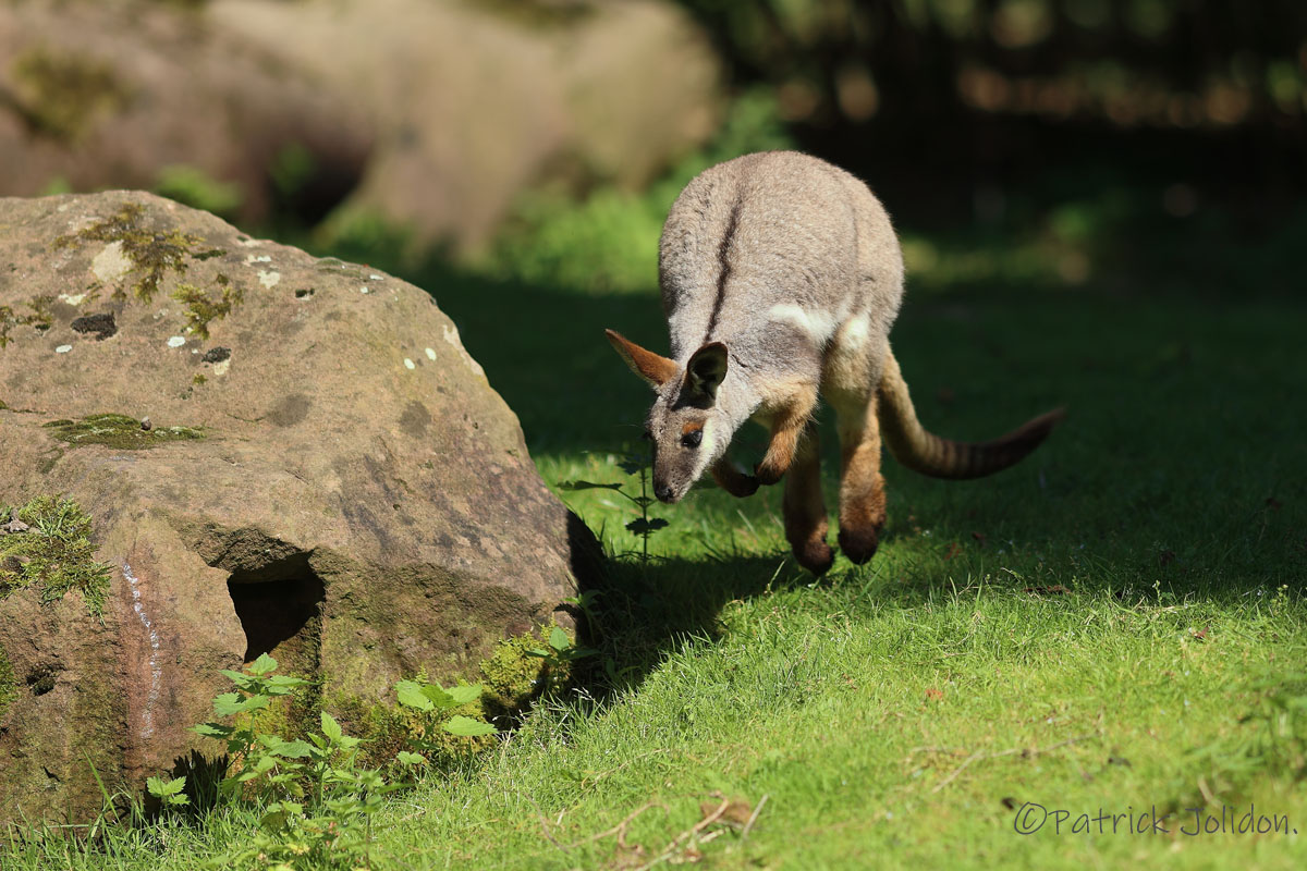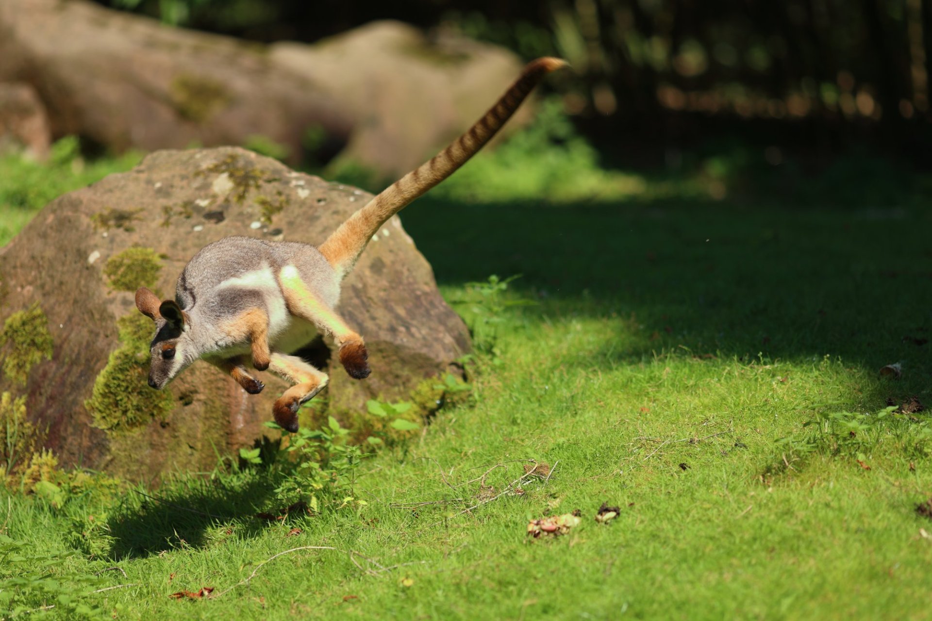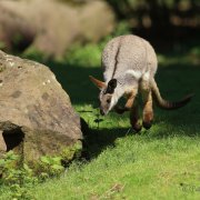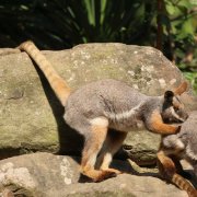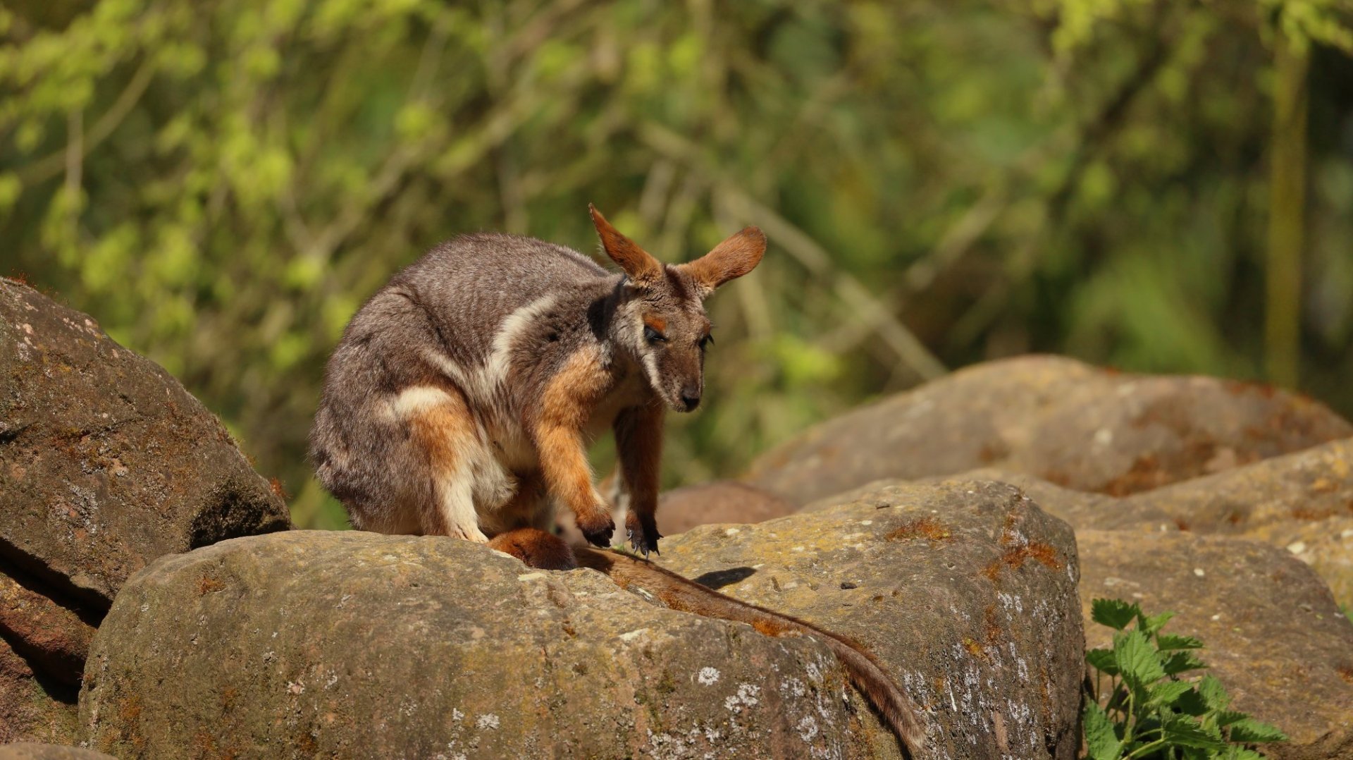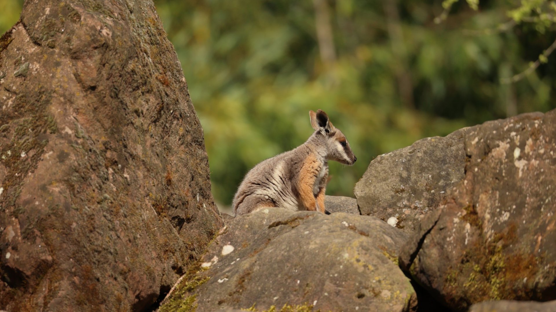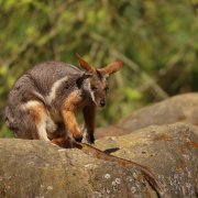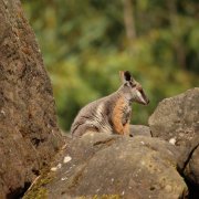 Le Wallaby des rochers, originaire d’Australie, se déplace avec agilité dans les forêts et prairies, parcourant de grandes distances à la recherche de nourriture.