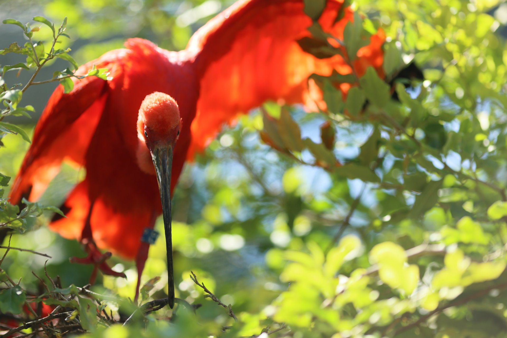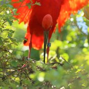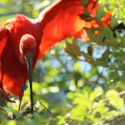 Dans les mangroves et forêts humides, l’Ibis rouge trouve refuge, se nourrit et se reproduit.