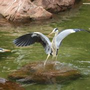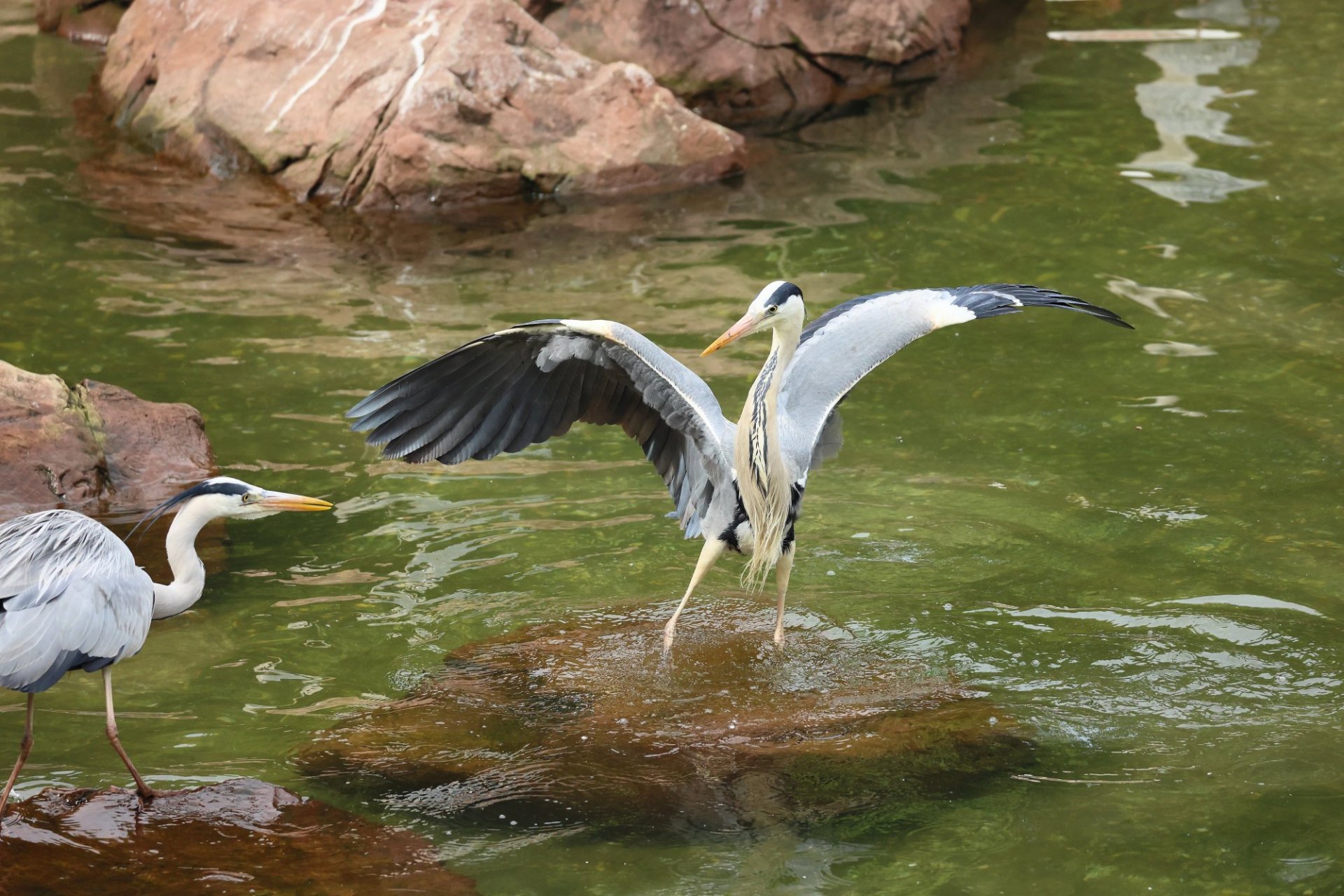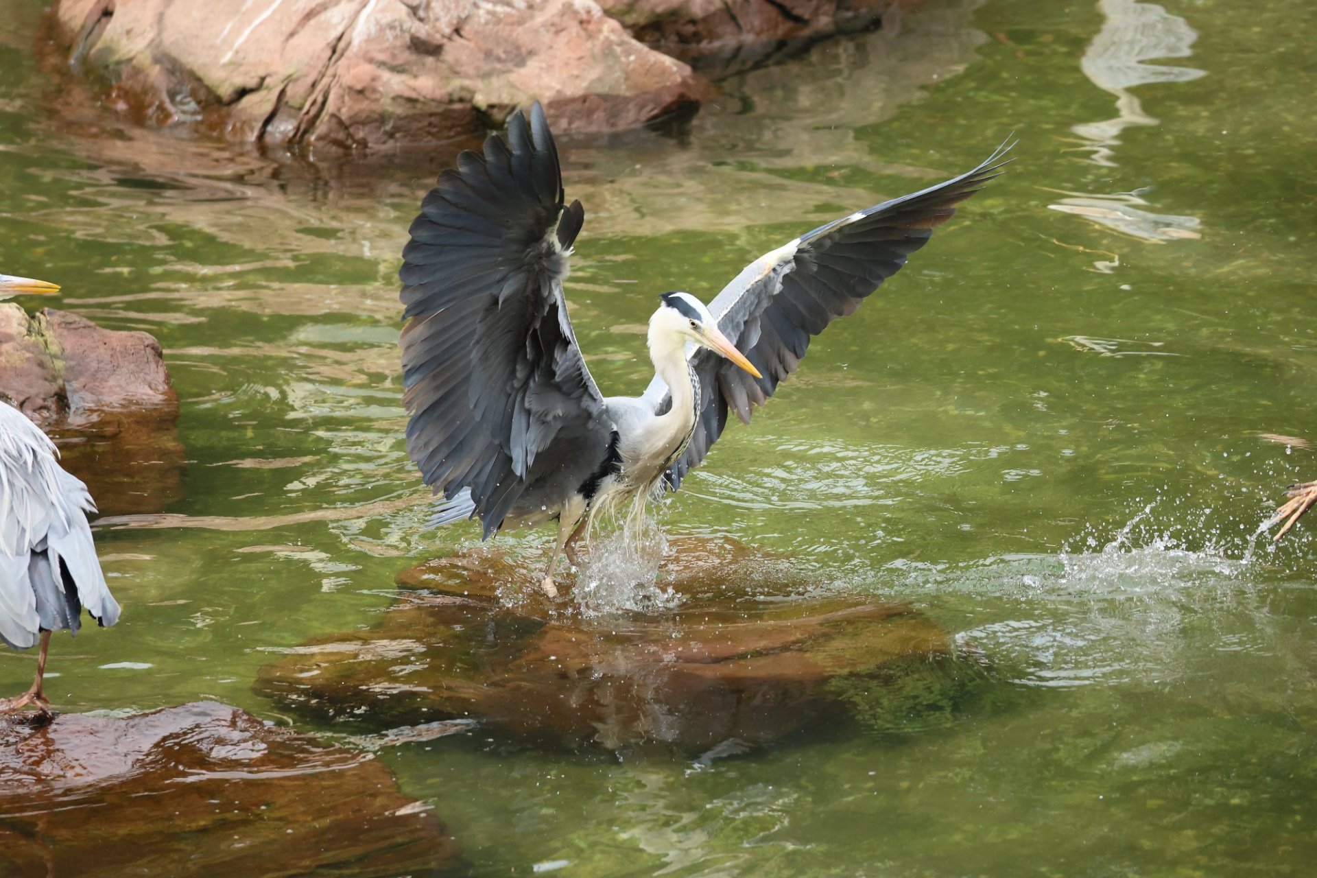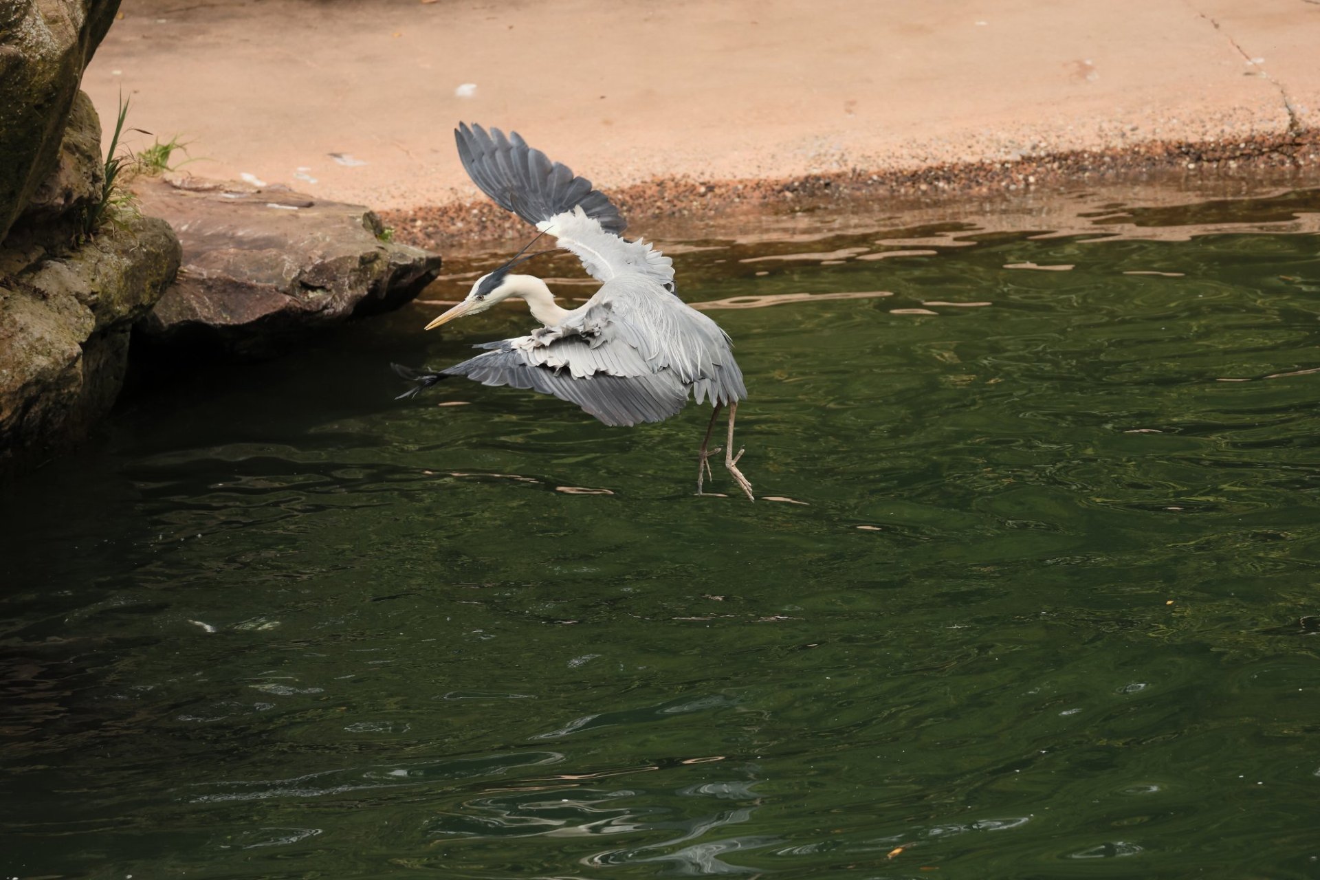 Au Zoo, certains visiteurs attentifs auront peut-être la chance d’observer un élégant visiteur des lieux : le héron cendré.